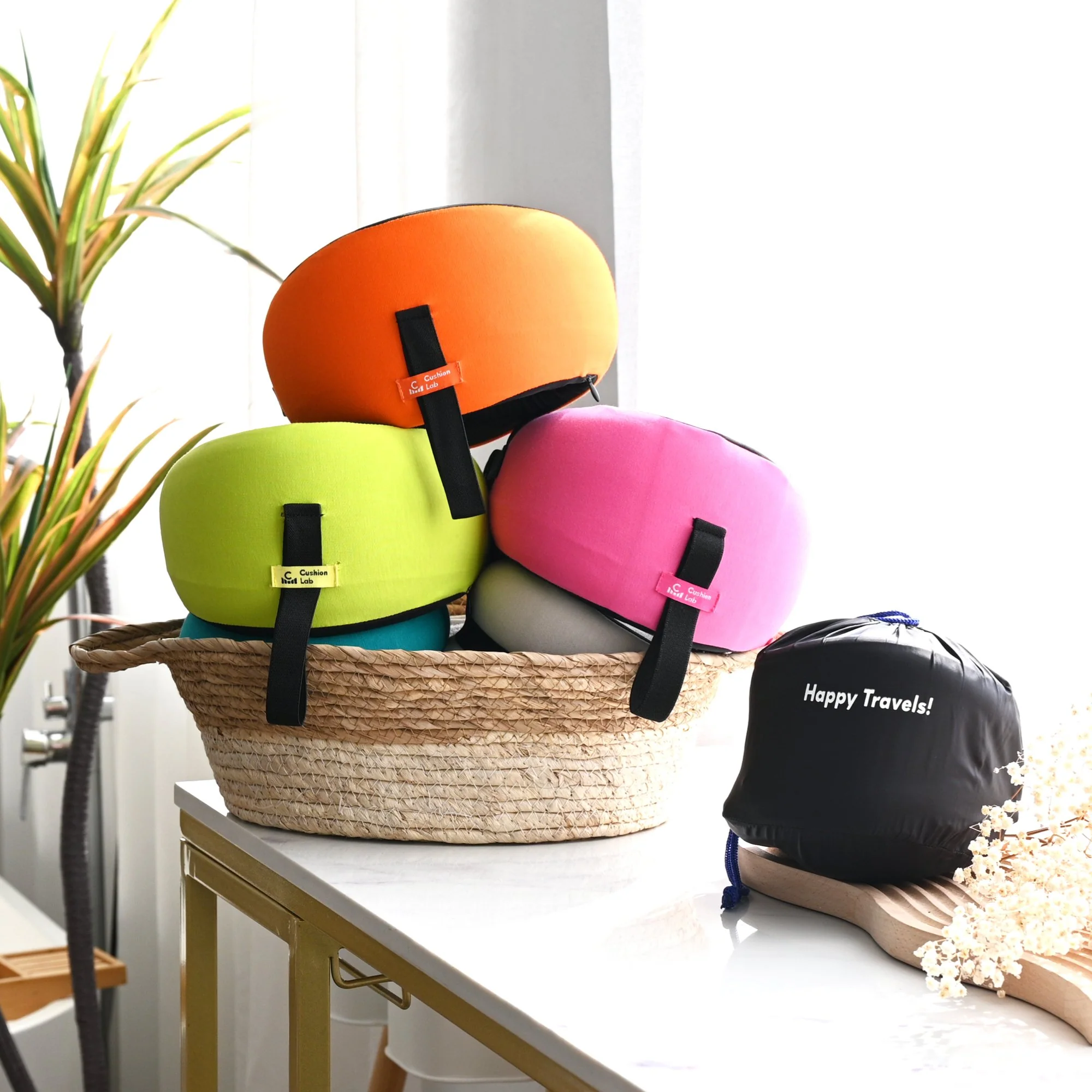 Protective pouch keeps your pillow clean and clips to your bag or backpack to keep your hands free.